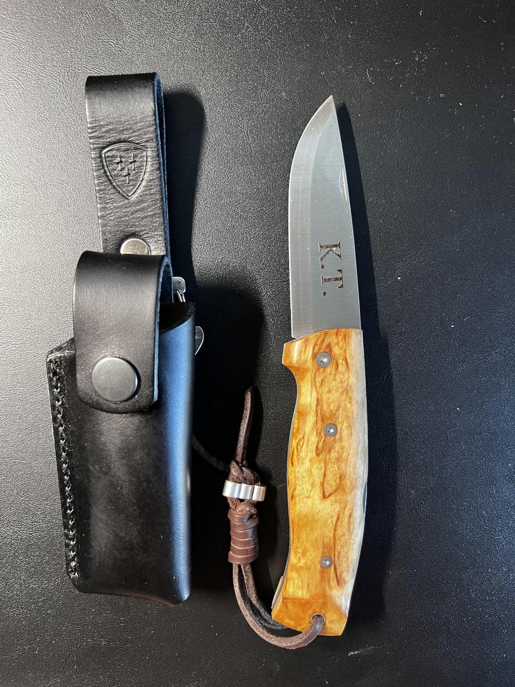 En herlig EDC for de som verdsetter en skandinaviskslipt skikkelig brukskniv. Liten slire som gjør lite av seg i beltet, men kniven føles alikevel som om den har fiksert blad. Ikke for ekstrem bruk, men for det meste dagligdagse på tur inkl spikking. Lett å sette opp og med et nydelig skaft som gir et solid grep. Slipte begge kantene der bladet går inn bittelitt, da jeg kjente det lugget litt i hånden der, men det var gjort på et minutt. En av mine favorittkniver dette👌🏻